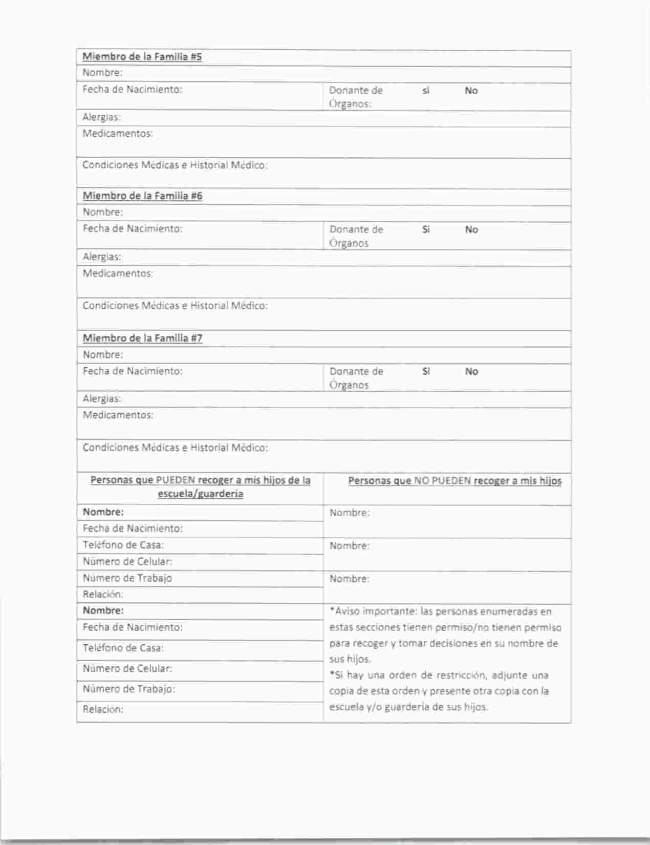 Aviso importante: Si hay una orden de restricción, adjunte una copia de esta orden y presente otra copia con la escuela y/o guardería de sus hijos.