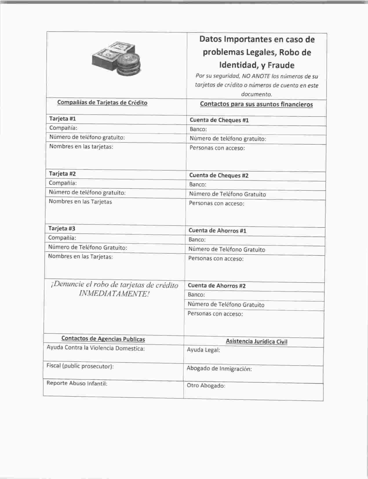 Datos Importantes en Caso de Problemas Legales, Robo de Identidad y Fraude