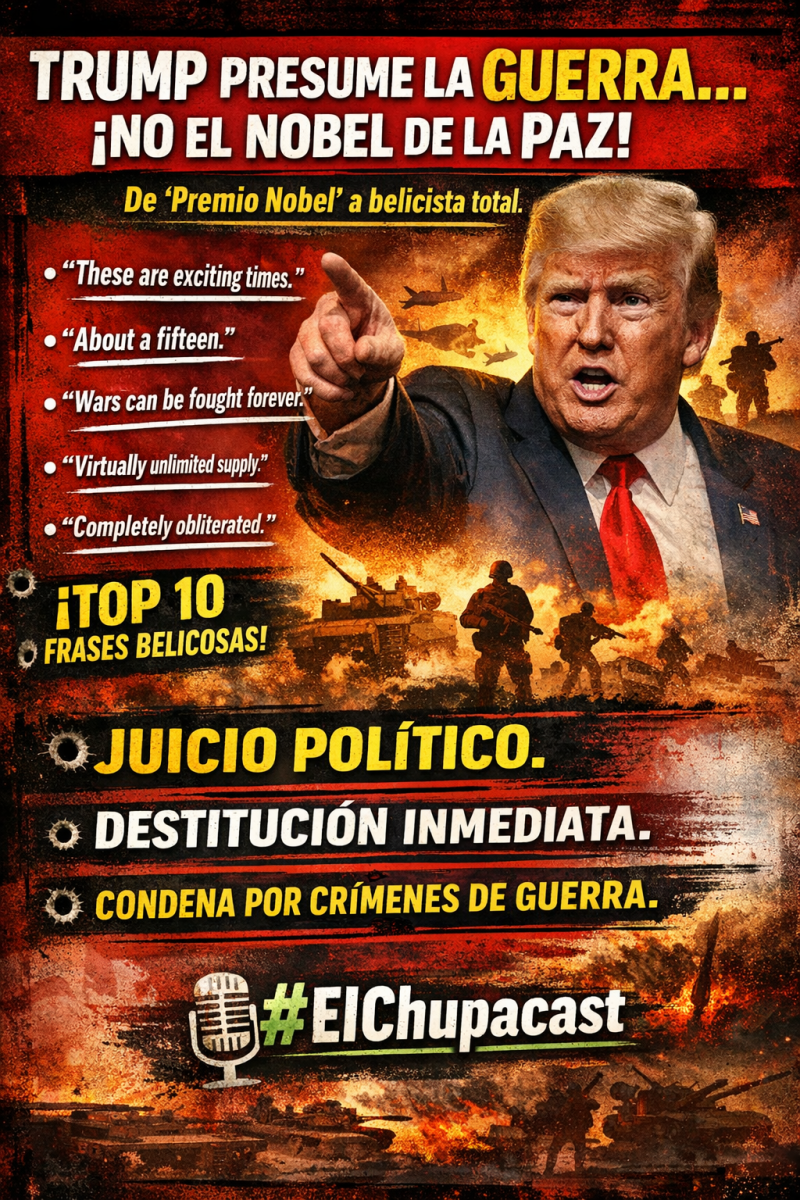 El mismo presidente que exigía reconocimiento como “presidente de paz” hoy describe la guerra como algo “emocionante”, presume calificaciones de “15 de 10”, habla de armas “ilimitadas” y afirma que las guerras pueden durar “para siempre”.