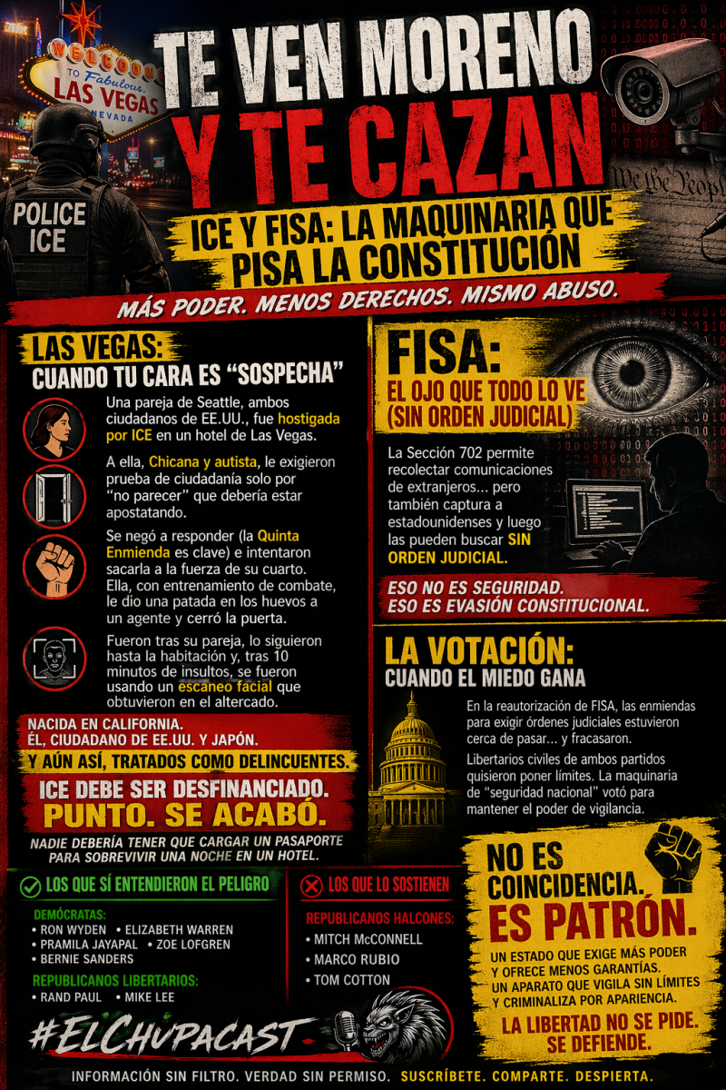 Camino al aeropuerto en Las Vegas, platiqué con una pareja de Seattle que fue blanco de ICE en el hotel donde me hospedé la noche anterior. Ambos ciudadanos estadounidenses, pero como ella es Chicana y su pareja es asiático, ICE comenzó a hostigarlos en el casino, exigiendo prueba de ciudadanía.